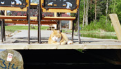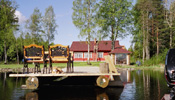 Myrskyn ja jään kestävät laiturit hirrestä kivillä täytettynä